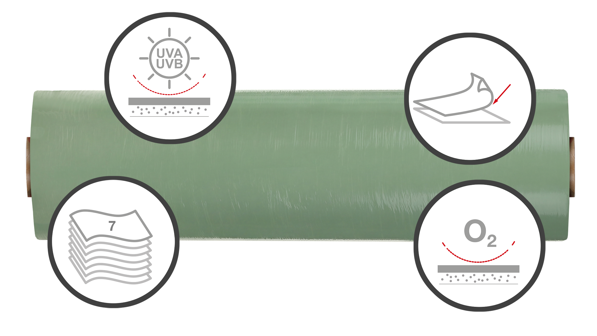 Excellent air barrier is guaranteed by the multilayer protection stretch film (preserving forage from fermentation).